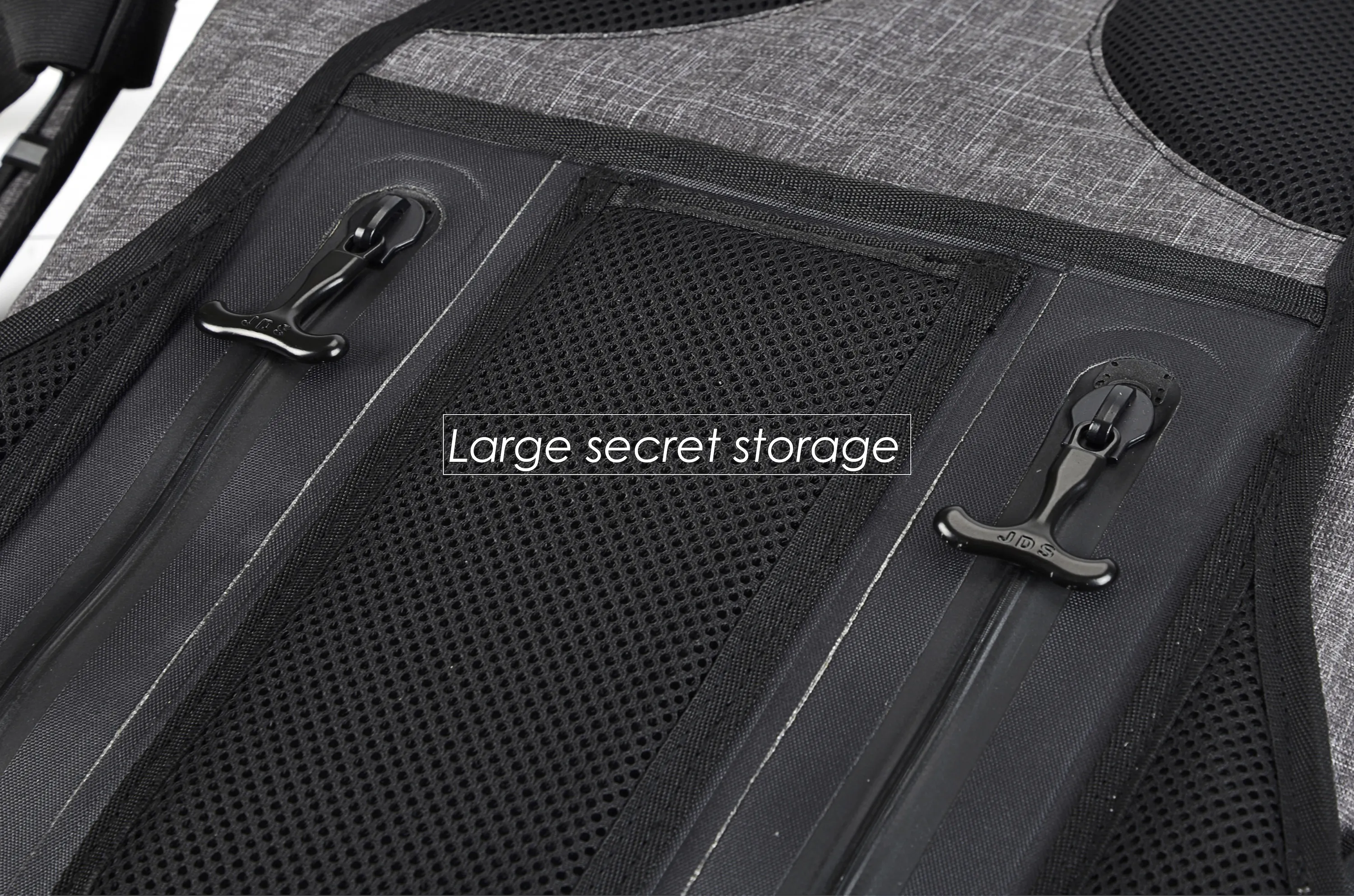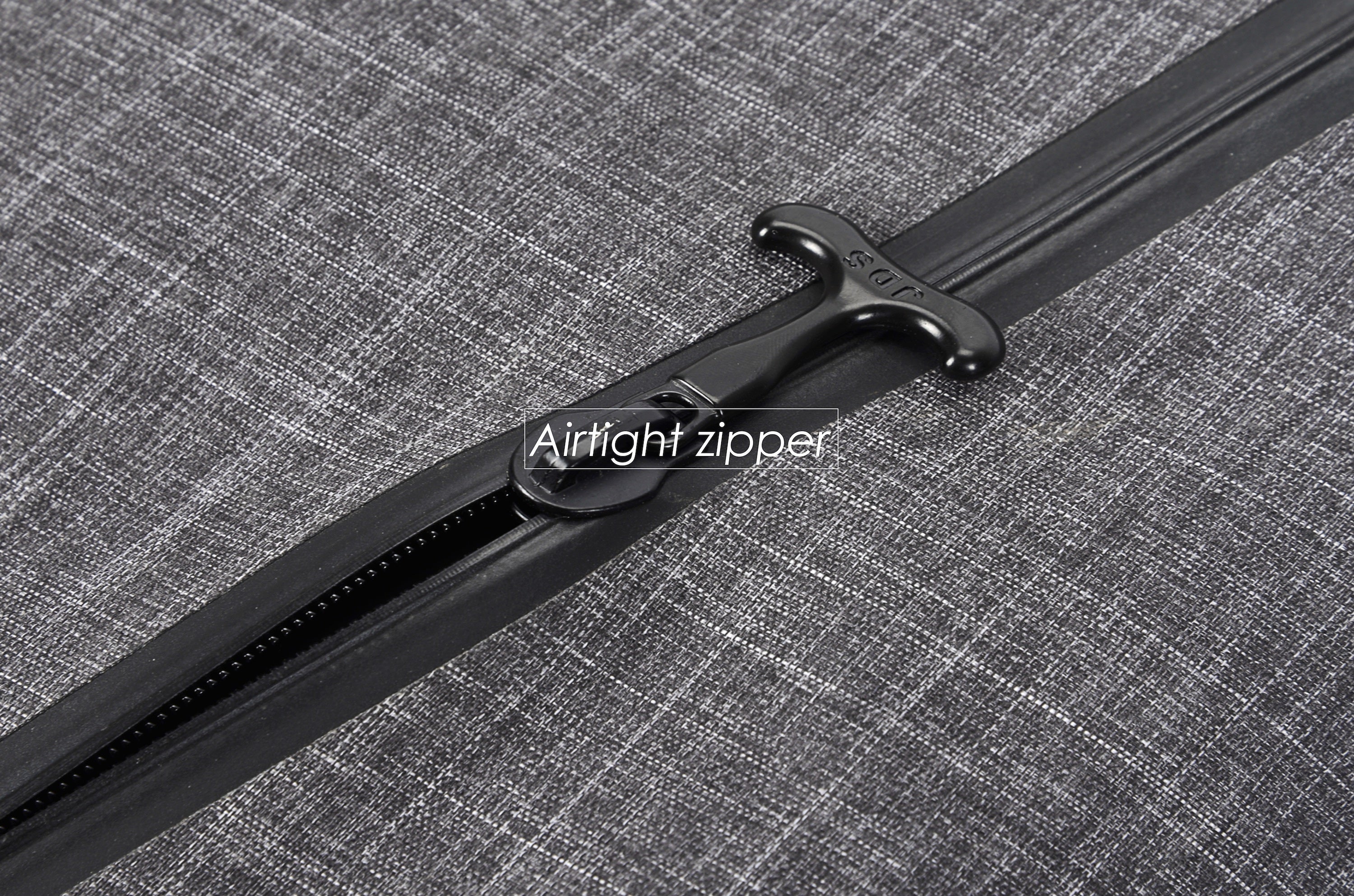 すべてのポケットに、最新のテクノロジーの気密ジッパーが付いています。水も空気もこのジッパーを通過することはできません。