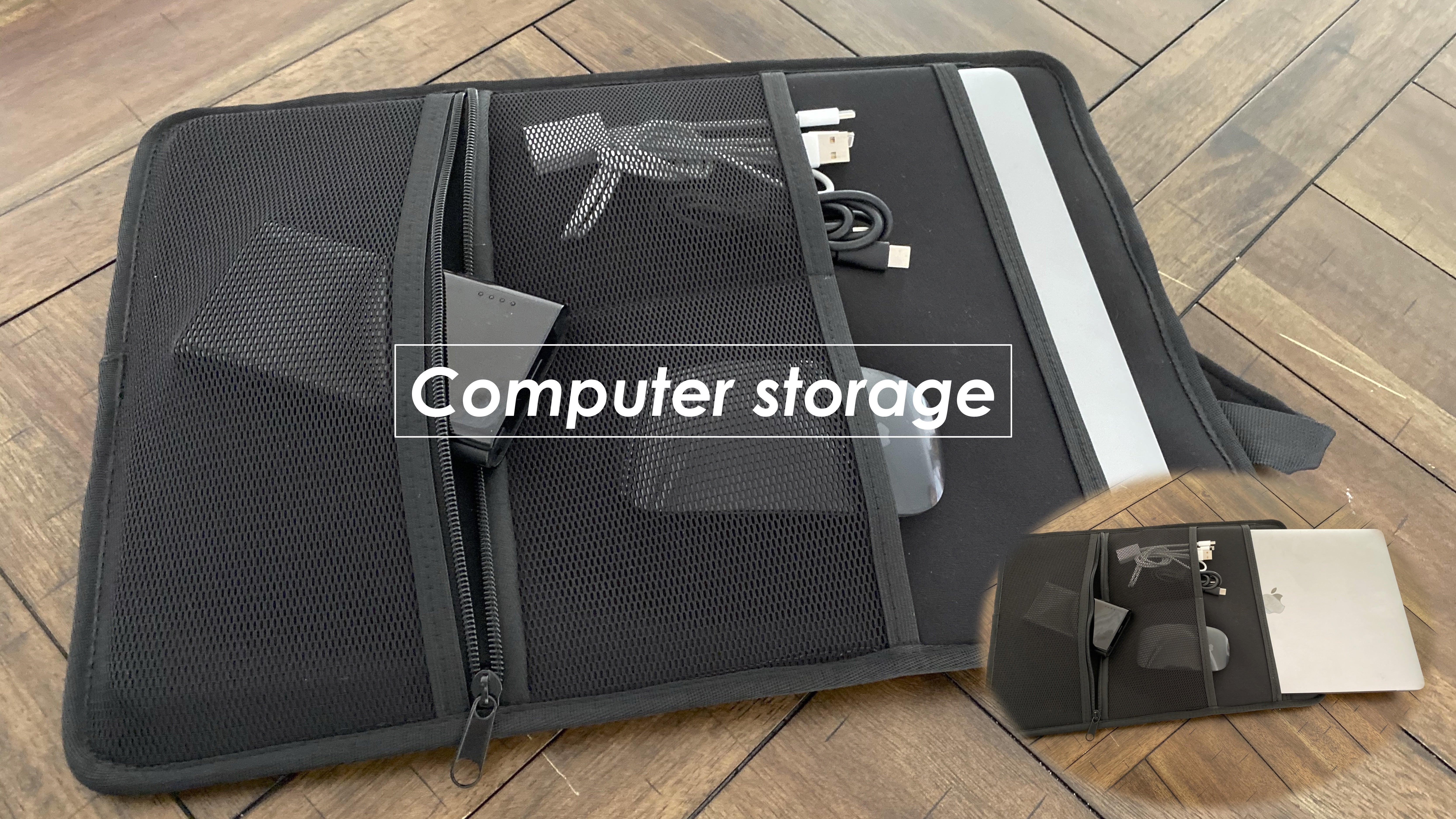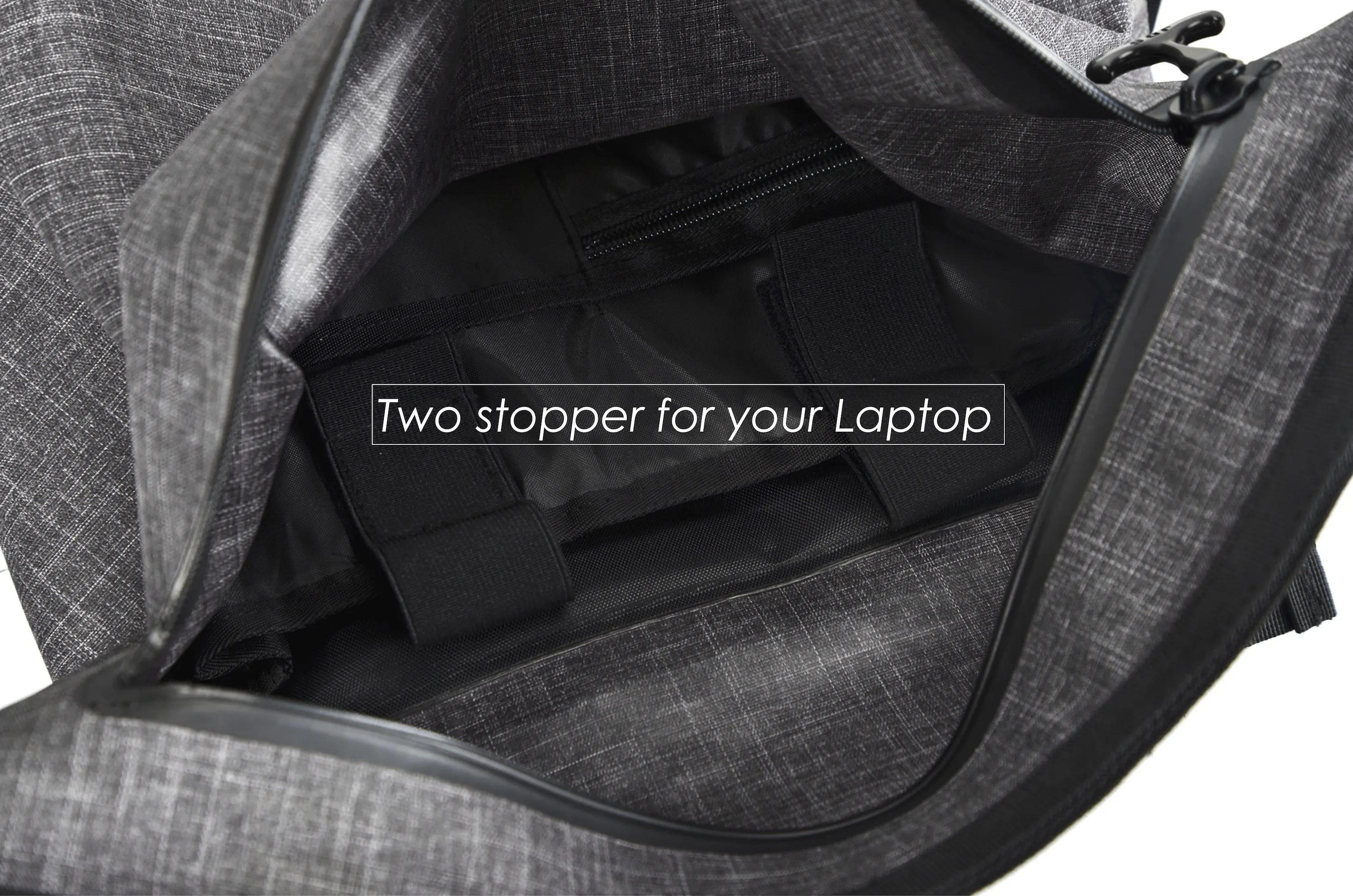 バックパックの内側の、コンピューターを入れるポケットには、長さ調節可能な二本のベルトを設置しました。バックパックを背負いながら走っても、中身が激しく移動しません。