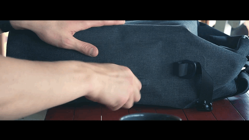 V-UDDYには、スーツケースのハンドルにアタッチできる設計にしました。この機能がある従来のバックパックは、この部分にゴムラバーを使用している場合が殆どで、数ヶ月で劣化してしまいます。しかし、V-UDDYは違います。上の画像の通り、劣化しにくい素材と設計です。また、シークレットポケットの内側をスーツケースのハンドルを通す設計ですので、シークレットポケットはいつでも使えます。