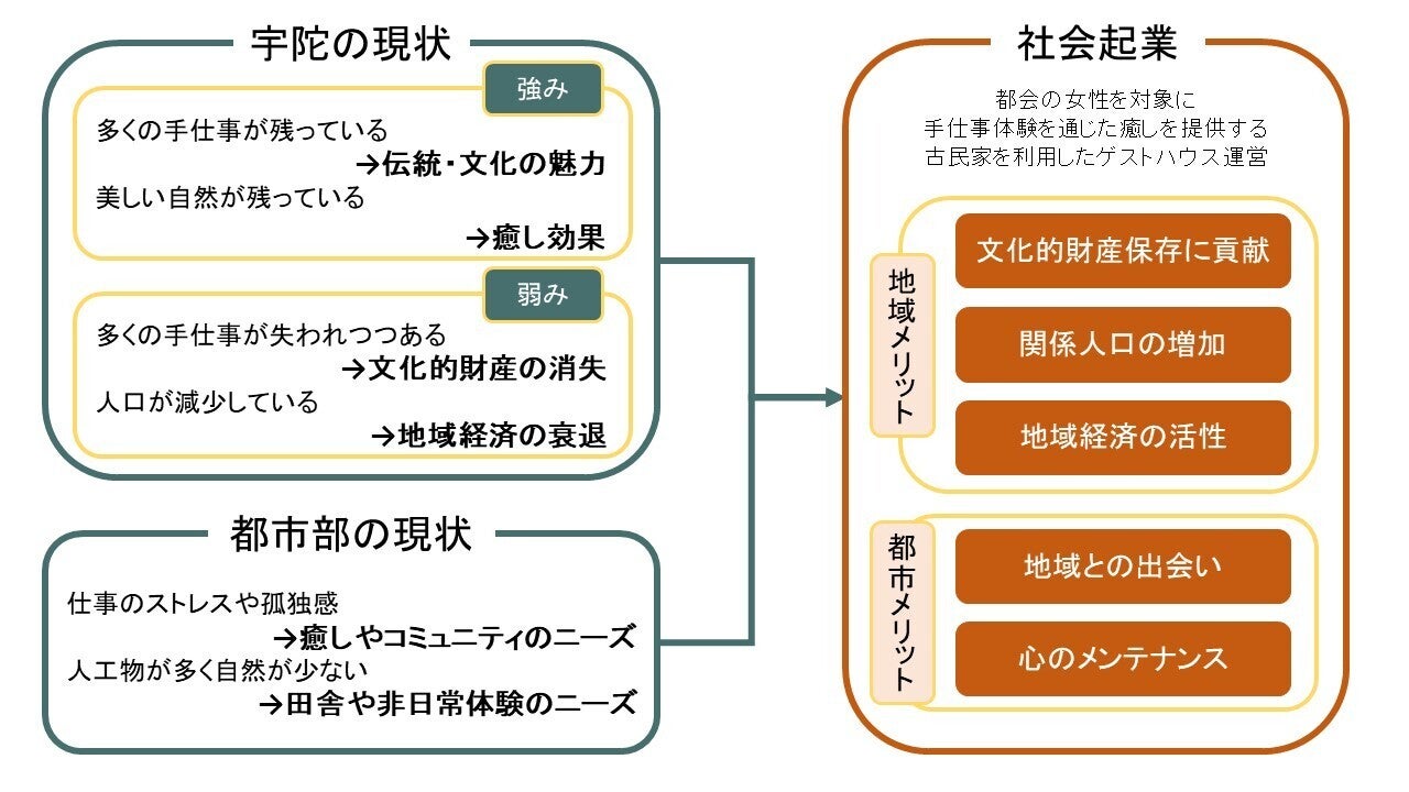また、地域の強みを生かすことにより、宿を訪れる人たちに気づきや癒しを与え、宿に人が訪れることで、地域の弱み克服に貢献したいと考えています。