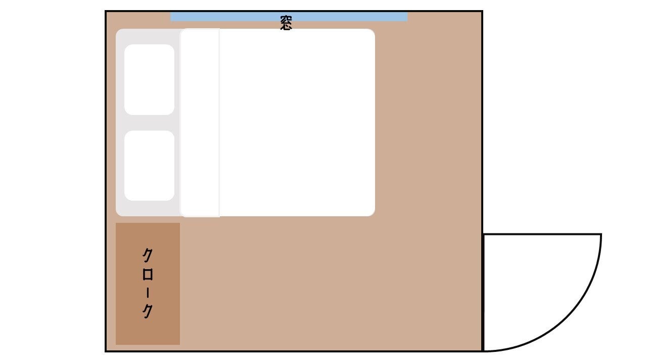 フローリングやベッド、クローク完備の、レトロな雰囲気のお部屋です。