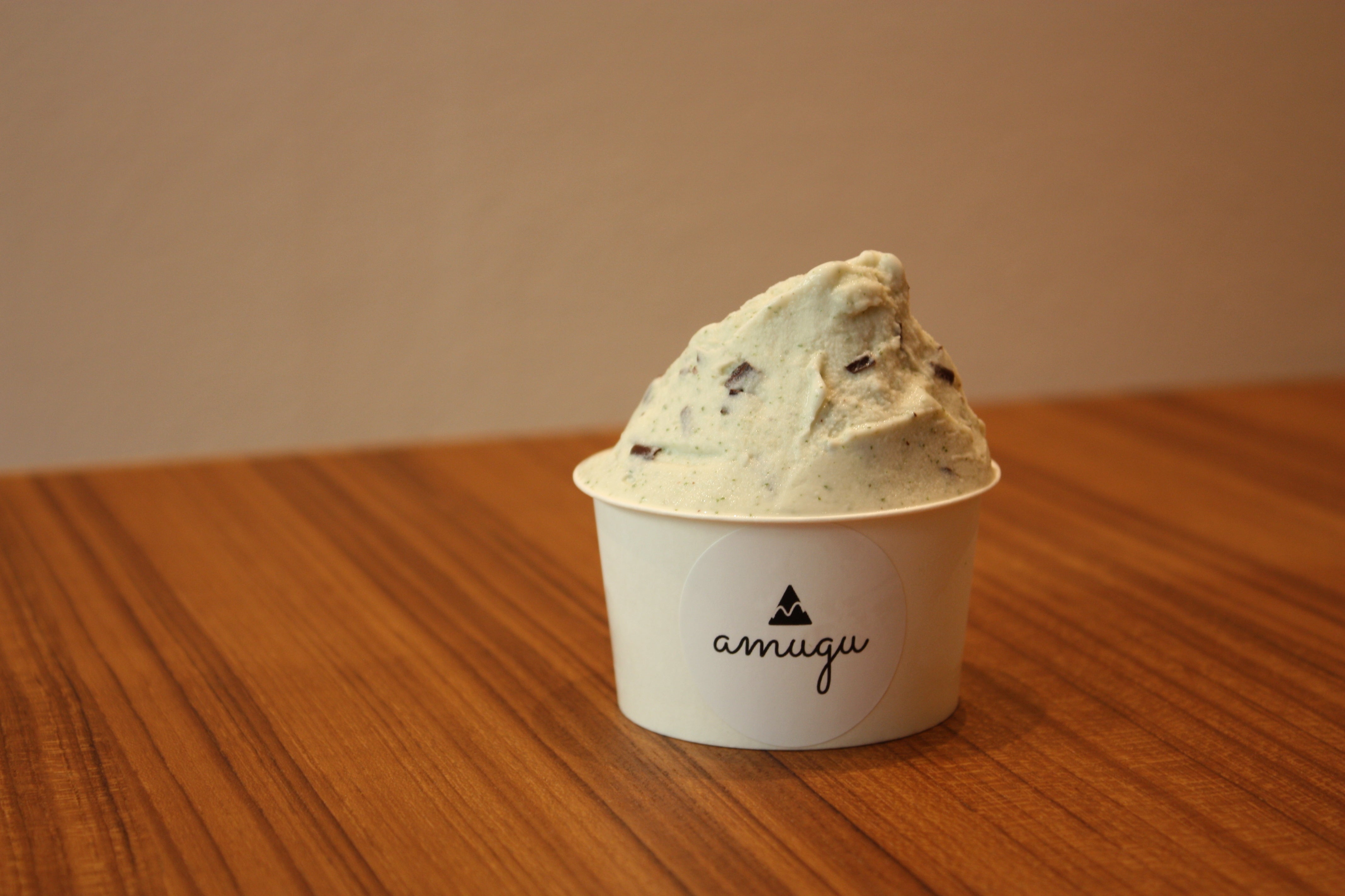 ノンナさんに作っていただいたチョコミントは、ミルクベースのミントジェラートにビターなチョコが香る、amuguらしい仕上がりになりました。