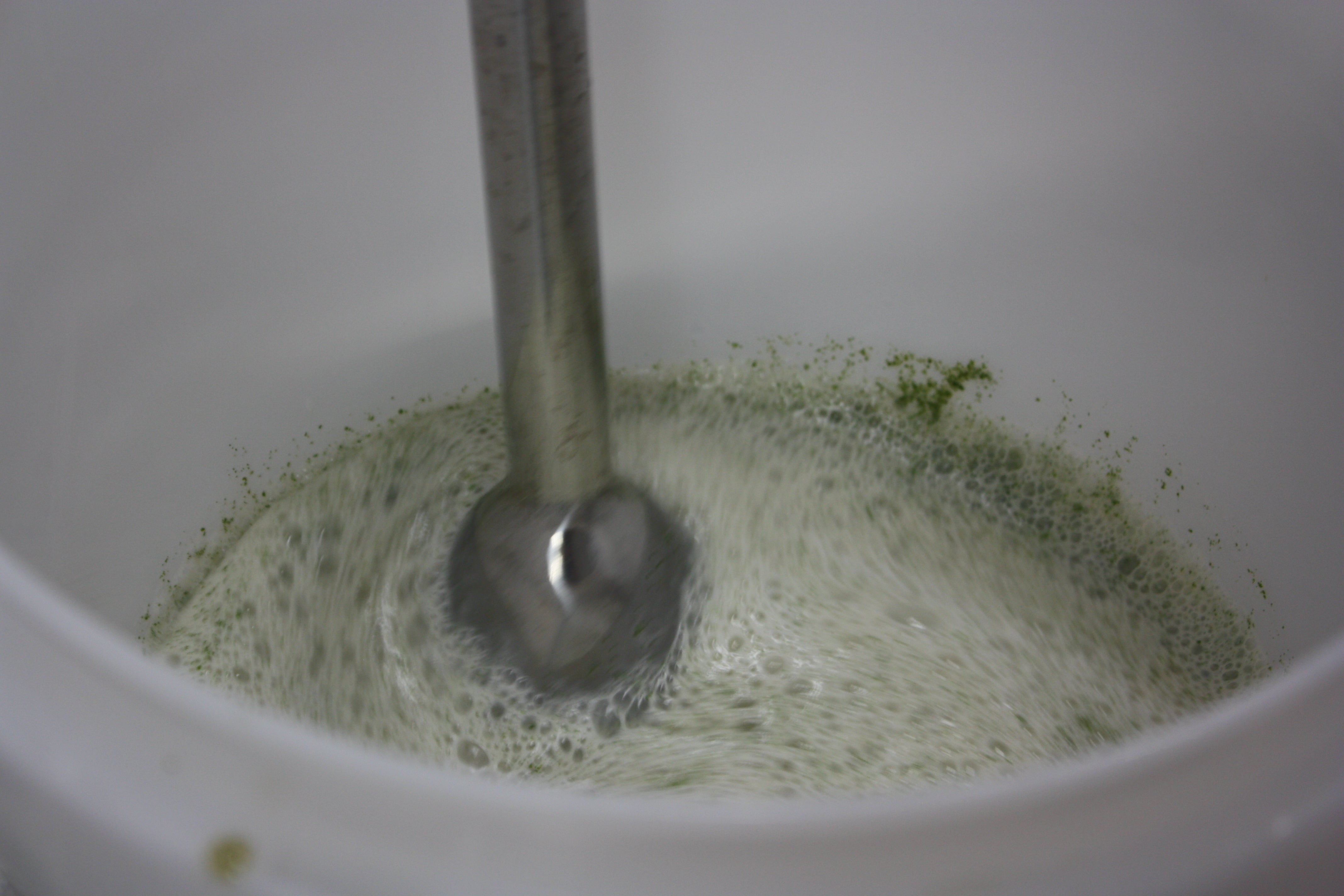 翌朝、漬け込んだミントを絞り、しっかりと味と香りを出したところで、細かくしたミントの葉を混ぜ込みました。