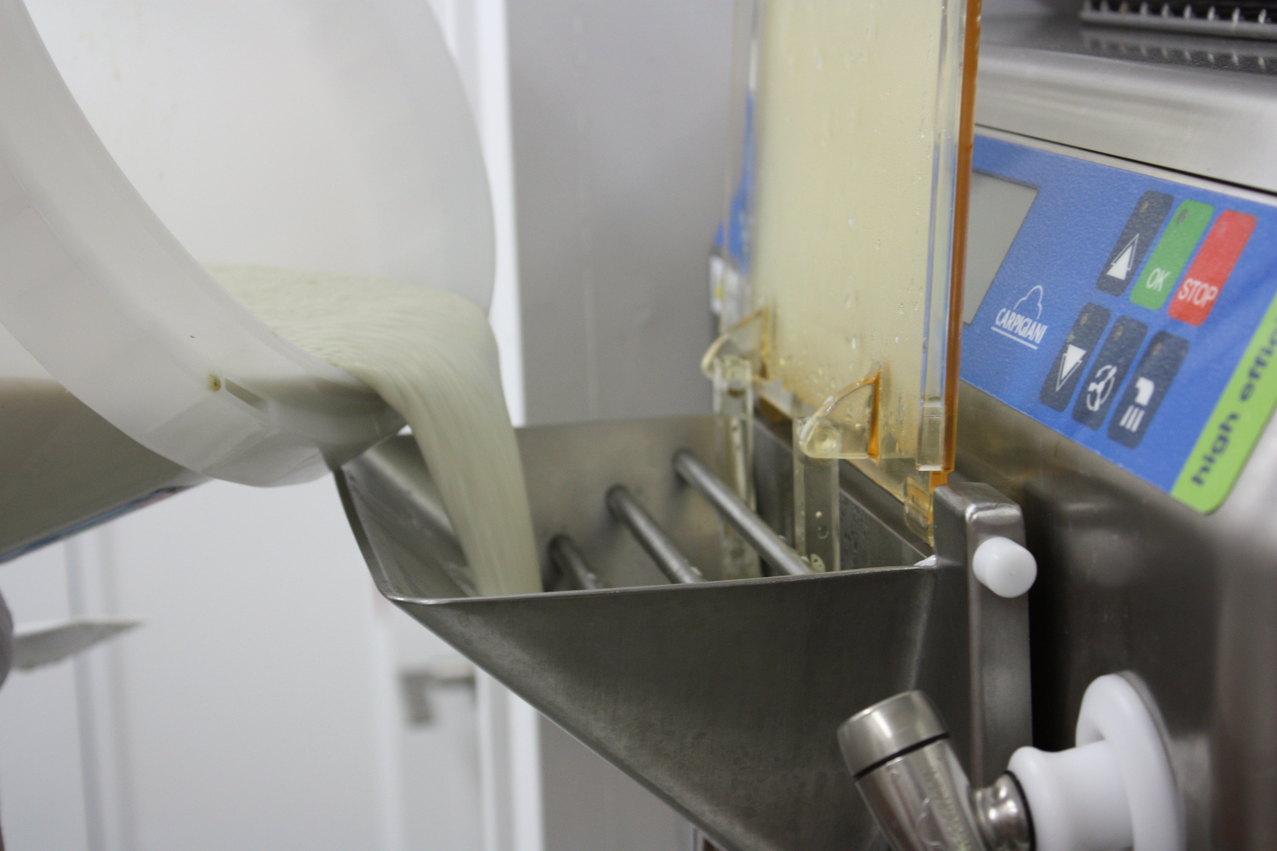 あとは専用の機械を使って、空気をたっぷり含んだとろけるジェラートにしていきます。