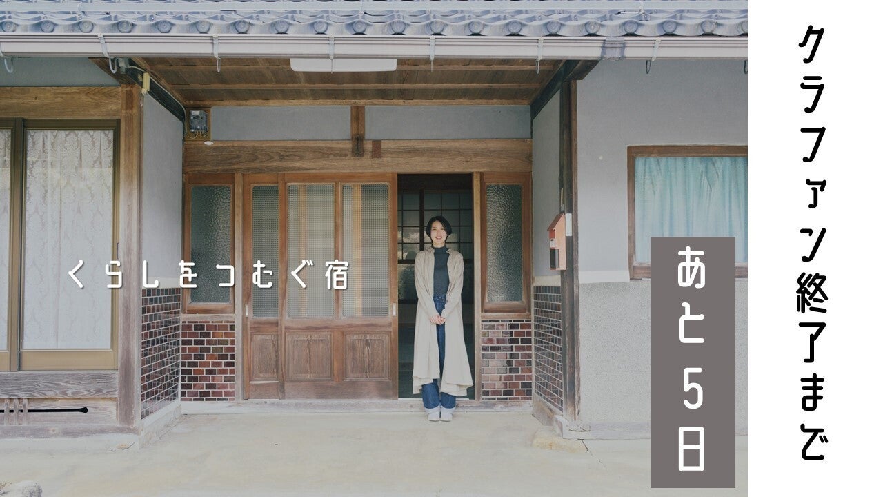 くらしをつむぐ宿、たくさんの応援ありがとうございます。皆様からの温かいご支援、心から感謝いたします。募集終了まで残り5日となりました。目標達成まであと16万8000円です。今回のプロジェクトは、「自分を大切にする方法を見つけられる場所」を作りたいという思いで立ち上げたものです。ここで出会った皆様や、これから出会う方々とこの思いを一緒に育てていけるような場づくりをしていきたいと思っています。このプロジェクトをより多くの方に知っていただけるよう、ご協力いただけますと幸いです。川原菜緒