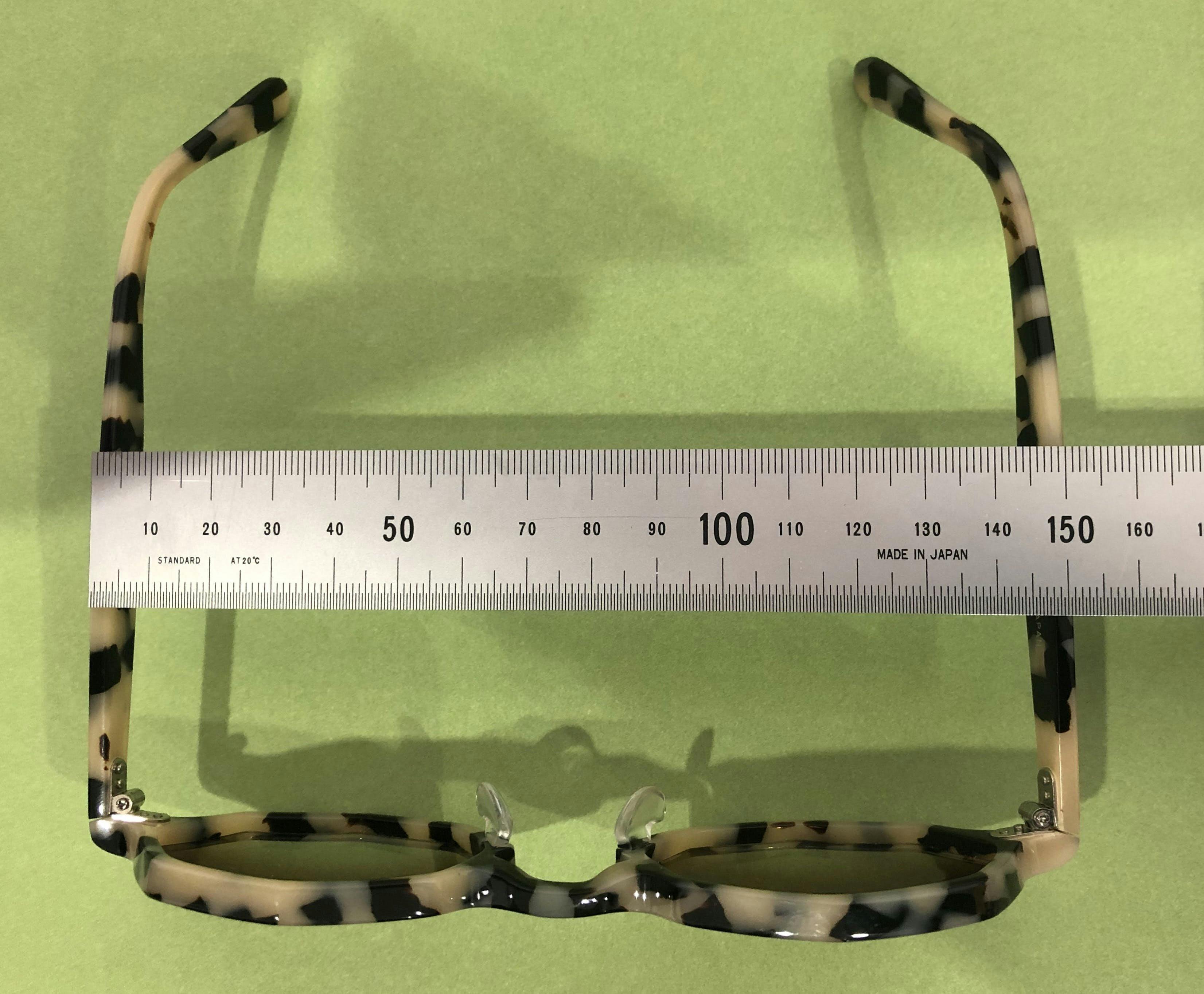 通常タイプは幅の一番広いところが、約15㎝です。(テンプル部分4㎜厚含む)