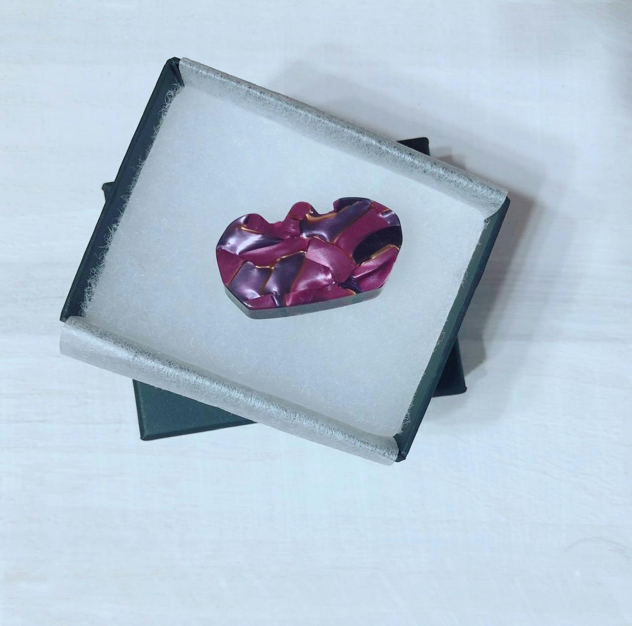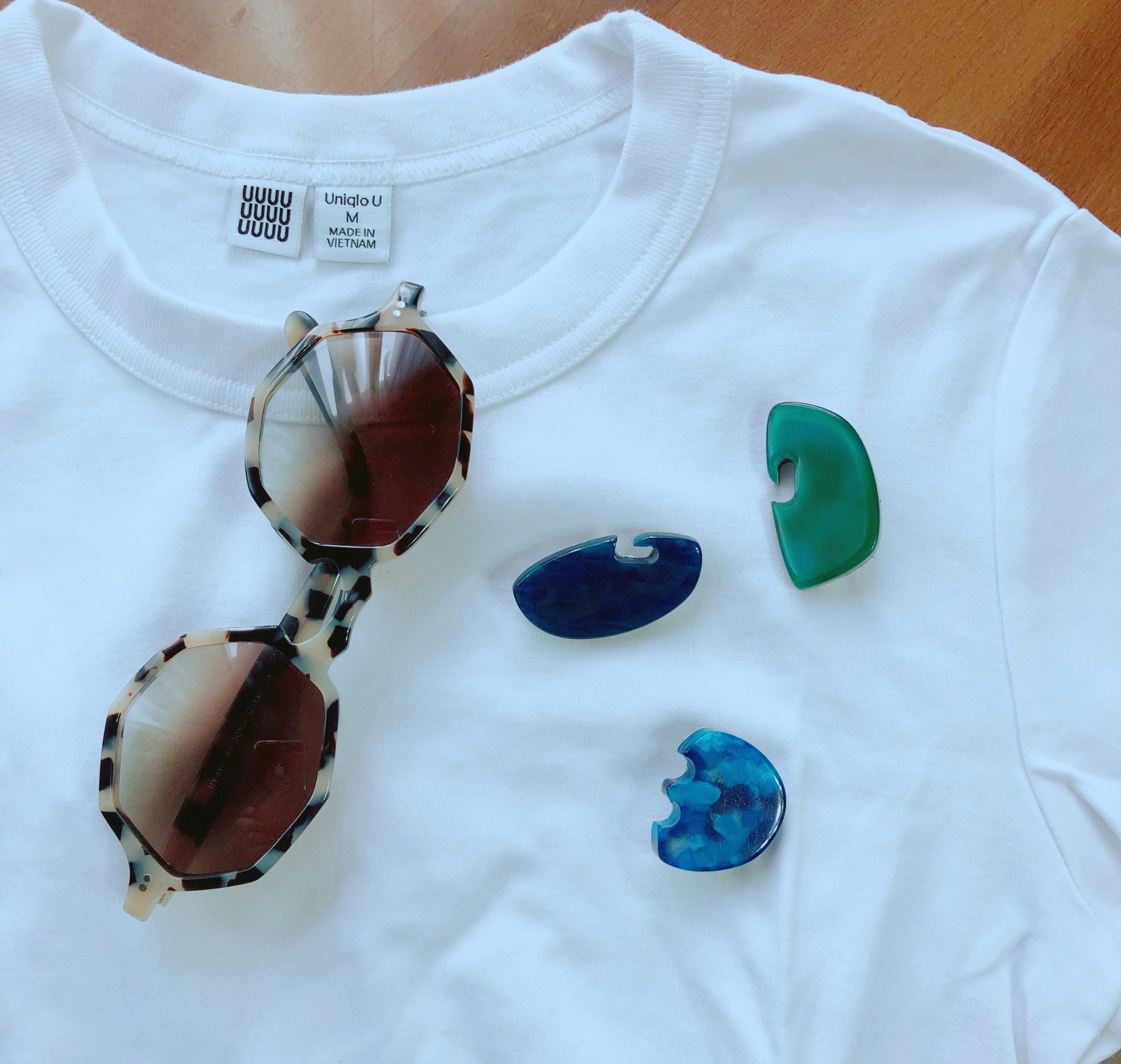 そこで考えたのが、端材を使って作るピンブローチです。眼鏡工場の眼鏡製作過程で偶然に出来た形をより生かす為にあえて形を整えず、手仕事で磨きあげています。