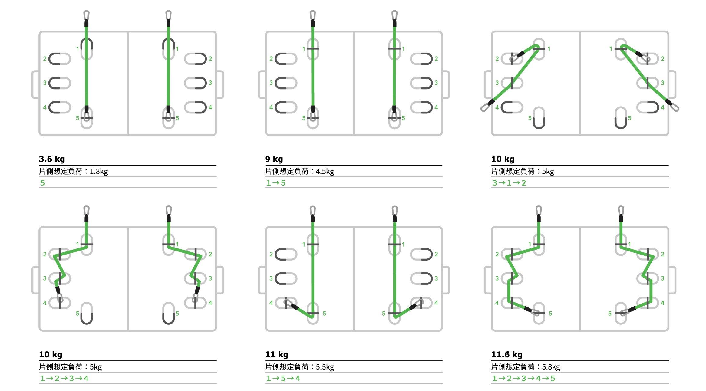 ※負荷バンドを別のリングに通し、バンドの長さを調節することで負荷調節ができます。