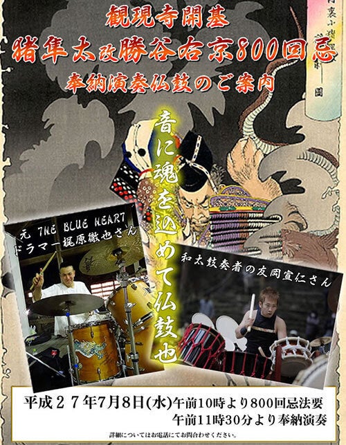 猪隼太 改 勝谷右京800回忌の奉納演奏仏鼓のときのご案内ポスター