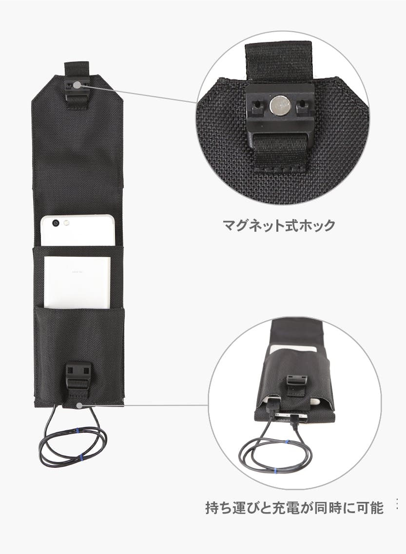 Bamian Pack本体のショルダーストラップに取り付ければ、充電しながらすぐに取り出せて非常に便利です。
