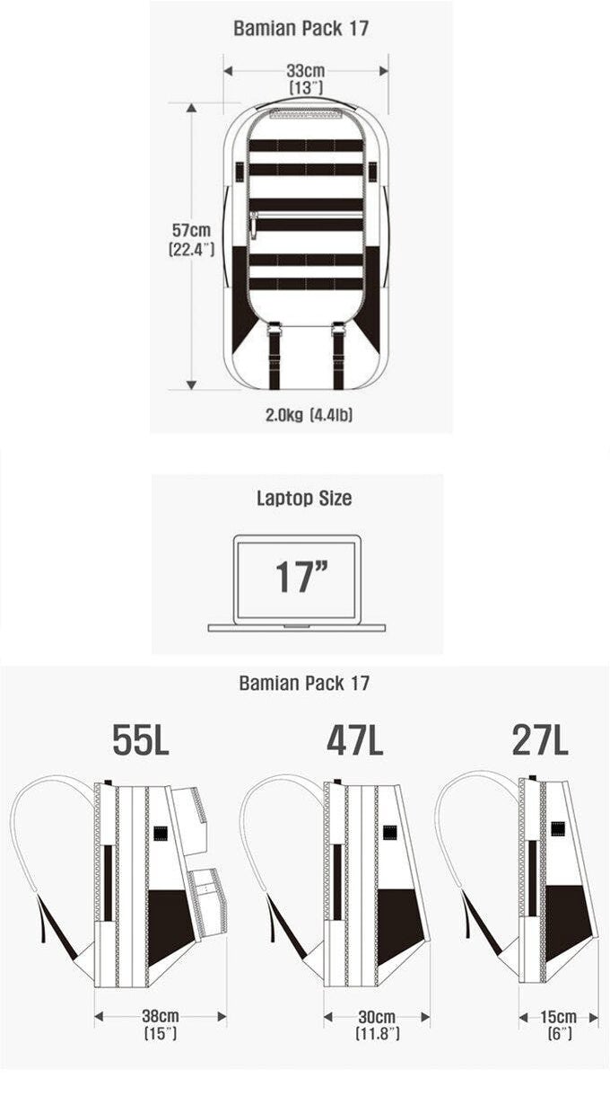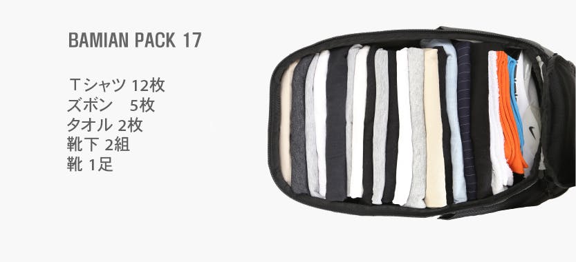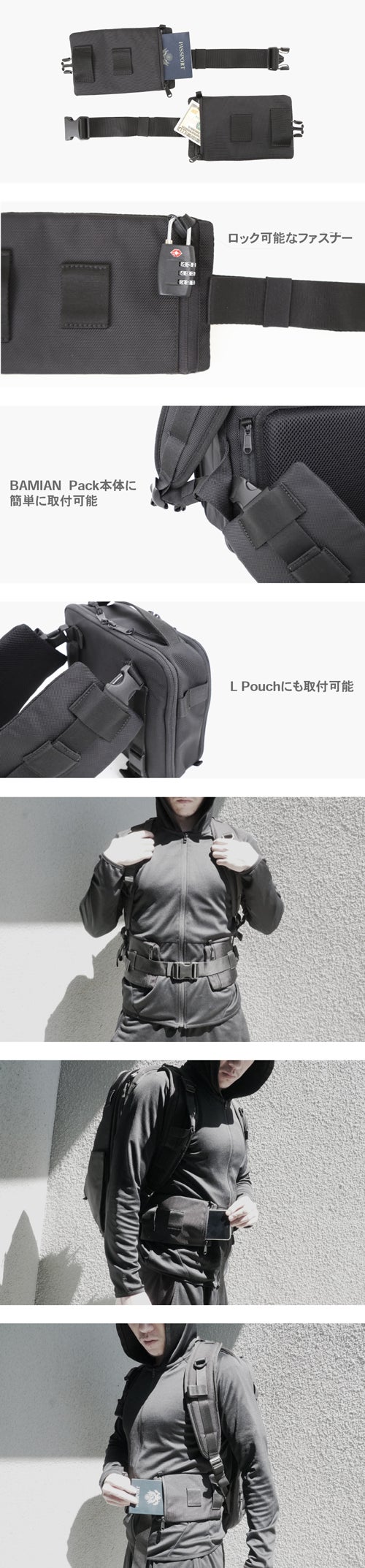 BAMIAN Packと付属ポーチについての詳細なサイズについてはこちらを御覧ください。