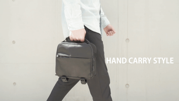 Bamian Packのショルダーストラップを固定して、横向きの手持ちバッグにできます。
