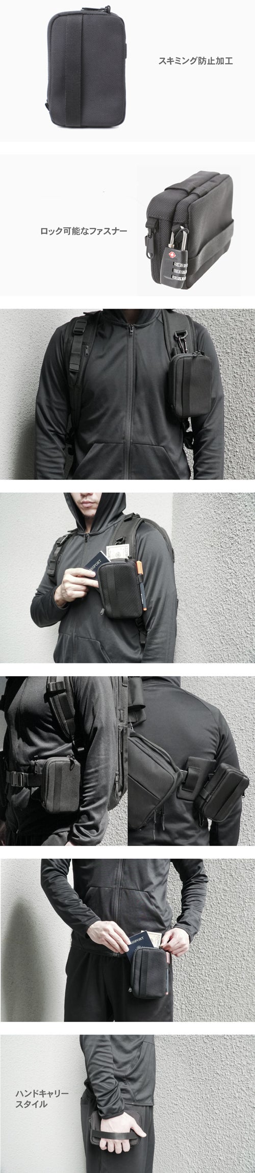 RFID BP Pouchはスキミングを防ぐ機能がついていて、パスポートやクレジットカードなどをいれるのにぴったりです。