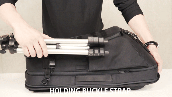 バックパック本体横には、傘や三脚などの長いものを固定可能