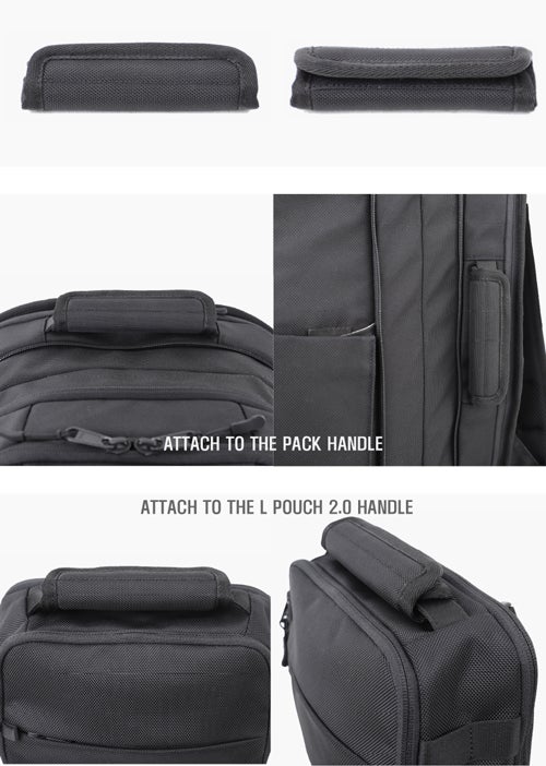 重い荷物も持ち運びしやすくなるグリップです。BAMIAN Pack本体だけでなくL Pouchの持ち手にも取り付け可能