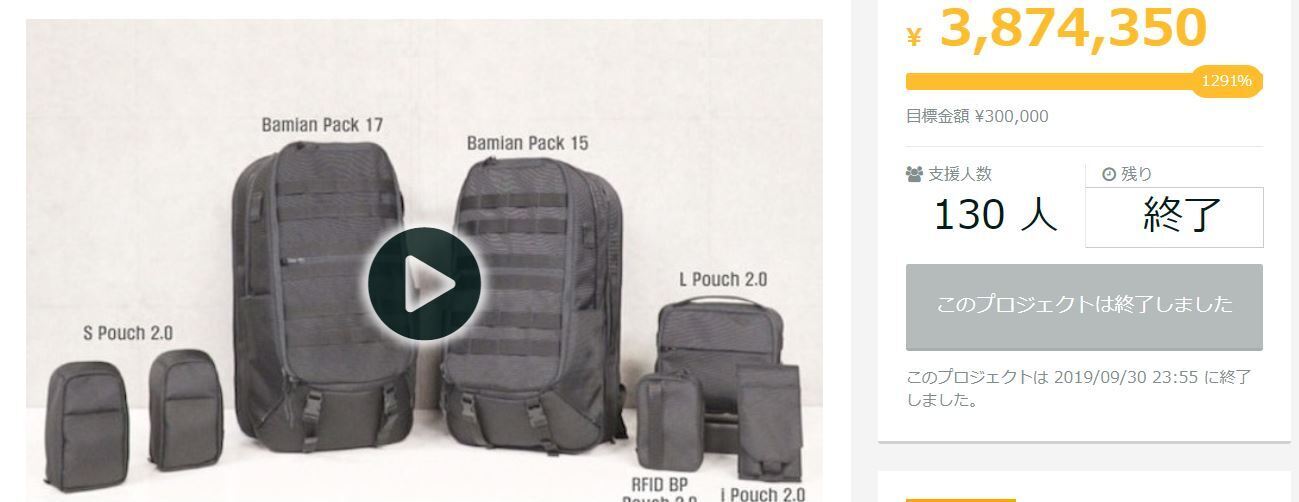 2020/05/31 10:02この度はご支援、応援いただき本当にありがとうございます。昨日を持って、今回のBamiam packのクラウドファンディングは終了となりました。なんと有難いことに792%ものご支援を頂くことが出来ました。心より感謝申し上げます。本日以降は製造及び出荷の情報をご支援者様限定でメッセージをお送りさせていただく形となると思いますので、全体へ向けての投稿はこちらで最後になります。CAMPFIREさんでの初めてのプロジェクトで不安もありましたがここまでは皆様のおかげで無事に来られました。心より感謝申し上げます。また、商品の発送についてもメーカーと連携し、なるべく早いタイミングでお手元に届けるように出来たら良いなと思っております。本日はお礼ということで以上とさせて頂きます。本当にありがとうございました! もっと見る