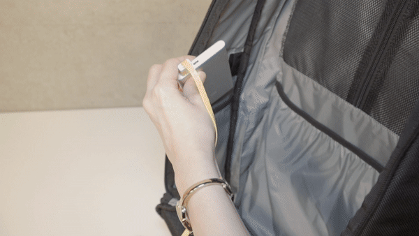 充電器用ポケットがあるから、ハンズフリーでバッグの中でバラバラにならずに充電できちゃいます!