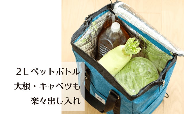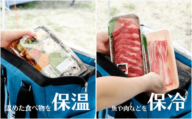 保温・保冷の性能はKABAGを継承。温めた食べものを保温、魚や野菜、肉などを保冷することで鮮度をキープ。ふだんのお買い物だけでなく、レジャーの場面でも活躍します。