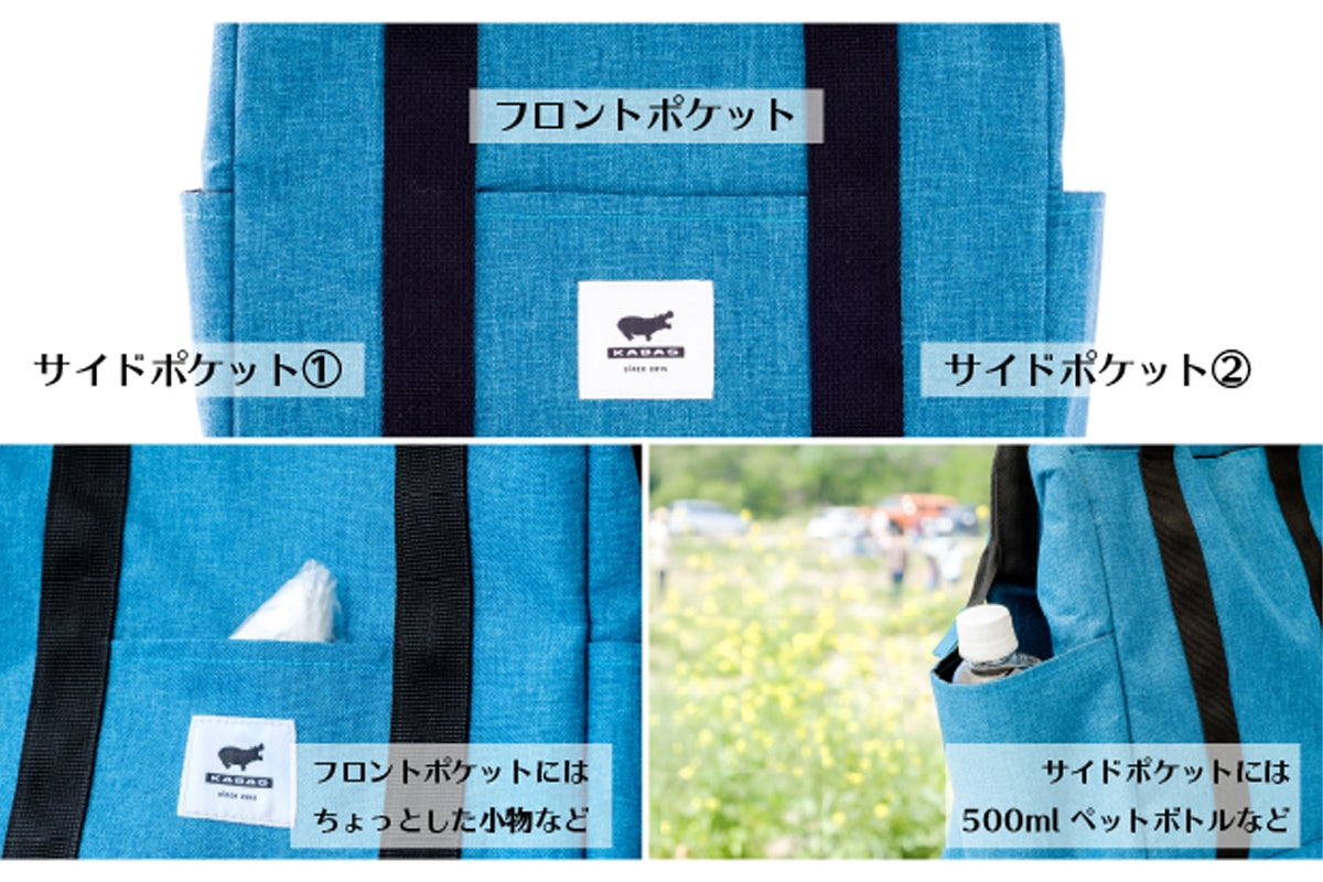 保温・保冷ポケット x 1 / フロントポケット x 1 / サイドポケット x 2