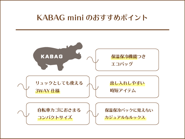 3WAY仕様の保温・保冷両用コンパクトエコバッグ「KABAG mini」をご紹介します。