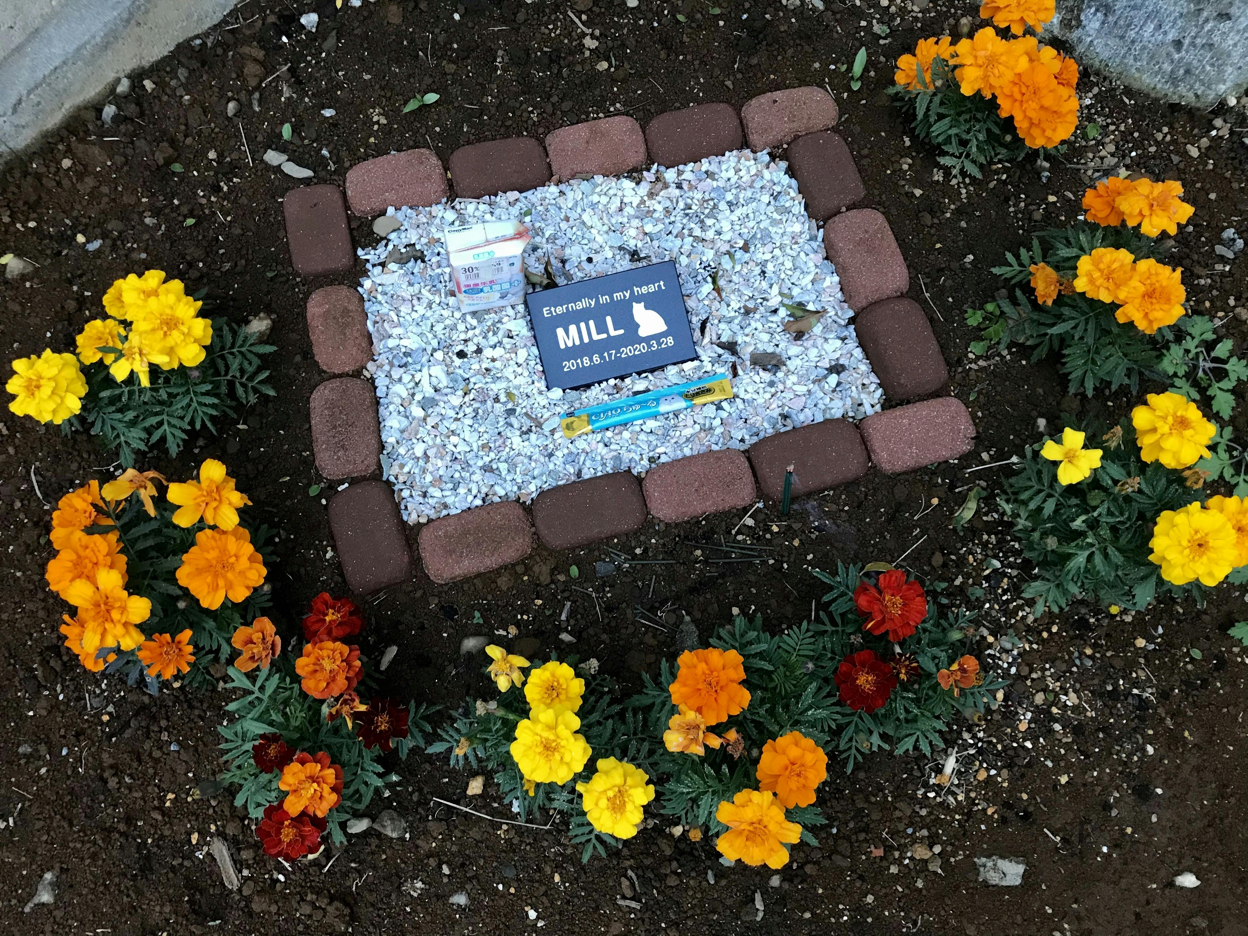 2020/04/28 22:22こんばんは。本日ご支援いただきました皆様に改めてご連絡させていただきました。お庭に眠るミルちゃんの新しいお家の周りにはマリーゴールドがたくさん咲きました。記念に植えた門出のハナミズキもたくさん咲き、新しい葉もたくさん出てきました。姿を変えてミルちゃんが元気でいてくれているような、そんな気持ちになります。ちょうどこの間、写真にある石碑が届きました。家の中にミルはいなくて、こうして石碑があることが未だに不思議な気持ちです。早いものでミルが旅立ち、今日でちょうど1ヶ月が経ちます。一人になってしまったもう1匹のニャンコは、寂しいのかよく鳴くようになり、さらによくついて来るようになりました。(元気に遊んで食べているので体調は問題なさそうです。)毎日お線香をあげて、話しかけるのが日課となりました。よく窓から外を見ていたのもあって、「最近見ないけどどうしたの?」と近所の方も心配してくださっていました。この大変なご時世ですが、皆様も体調にはくれぐれも気をつけてお過ごしください。 もっと見る