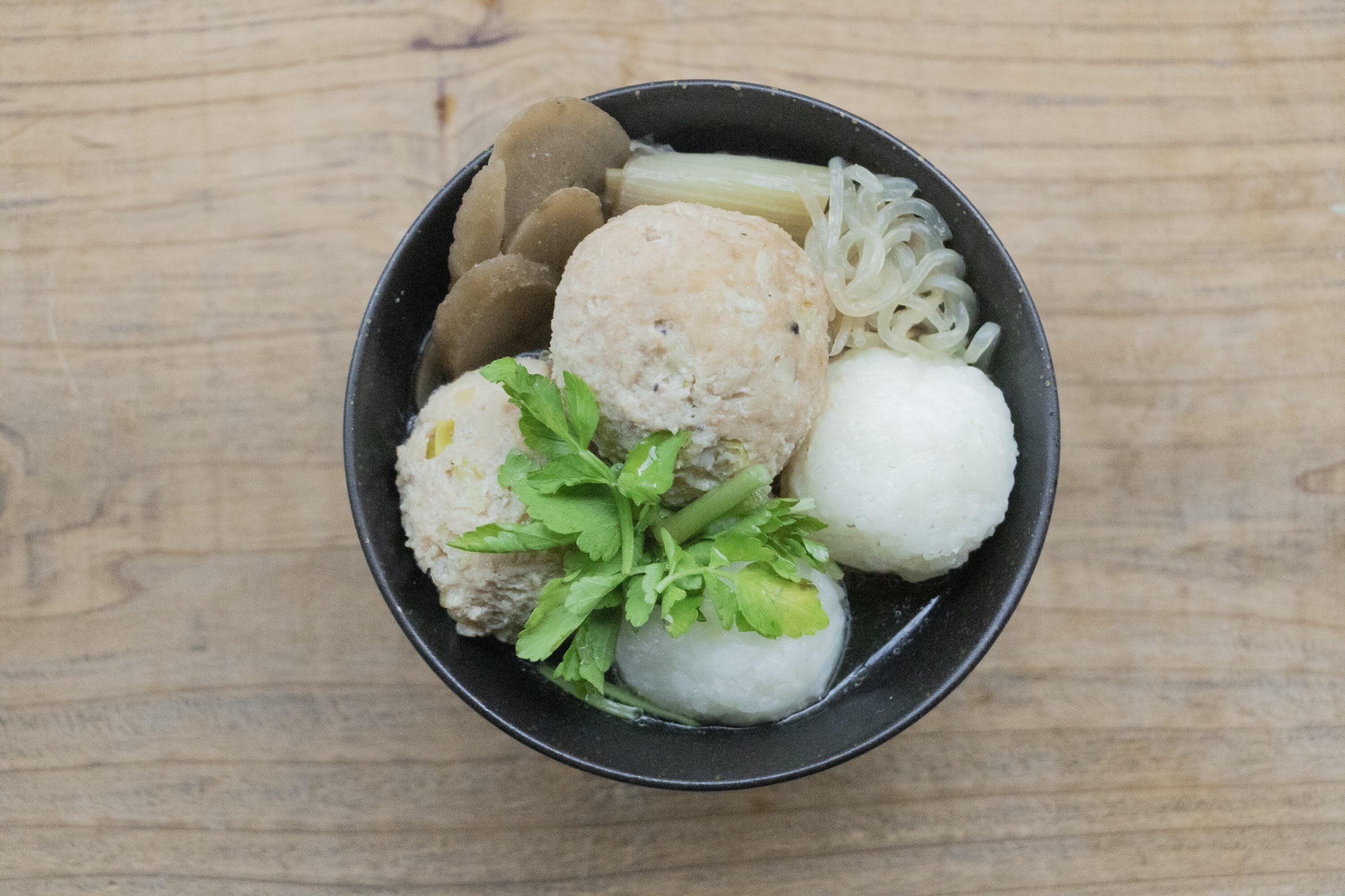 秋田県といえばきりたんぽ鍋が有名ですが、実は一般的に多く食べられているのはお米を潰して丸めて鍋に入れる「だまこ鍋」という料理なんです。そのだまこ鍋を少しアレンジして、比内地鶏の鶏団子を入れただまこ風スープも開発中です!