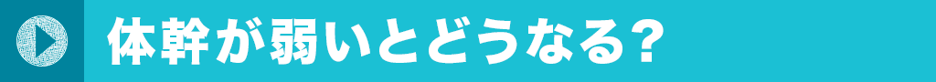 体幹が弱いことでバランスを崩したり、転んだ際に上手く手をついたりすることができず、怪我や転倒が多くなります。