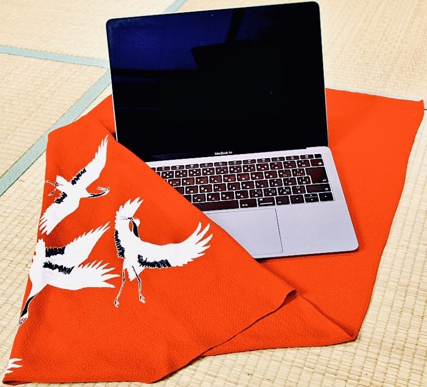 お菓子や、一升瓶やワインボトル、ノートブックPC、タブレット、カメラ、キャリーバックに結び付けたり、身につけたり、もちろん着物を包んだり、、、