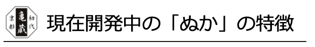 これまで「トマトの漬物」「アロエの漬物」「リンゴの漬物」などの画期的な漬物を開発してきましたが、今回開発している新製品とは、一番人気の「ぬか」です。時節柄、外食する機会が減った方々に、お家で美味しいものを食べてもらうために、江戸時代より伝わる初代亀蔵秘伝のぬかをさらに改良し、野菜だけでなく、お肉や魚などを漬けても美味しく食べていただける「魔法のぬか」を開発中です。
