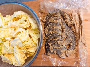 春キャベツも一緒に炒める。
