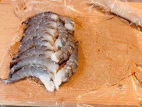 1. 海老は殻をむいて、キッチンペーパーなどで軽く水分を取る