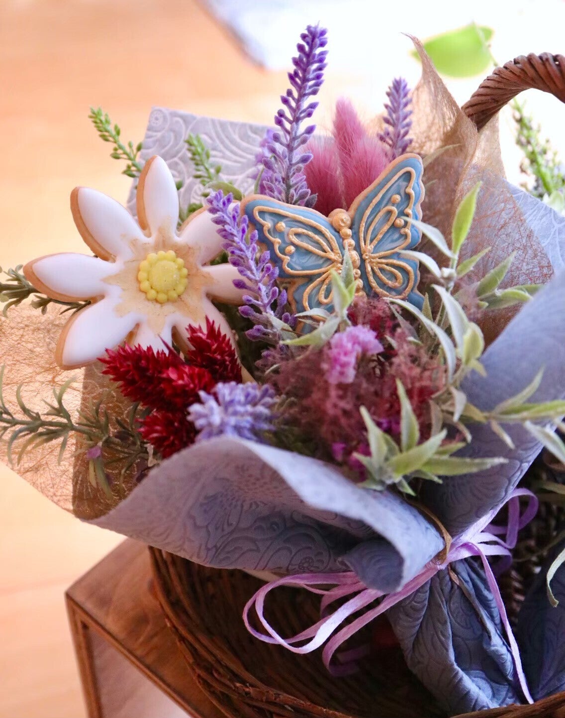 雨の日はお家の中でクッキーを焼いたり、色鮮やかなお花を飾ってみたりして
