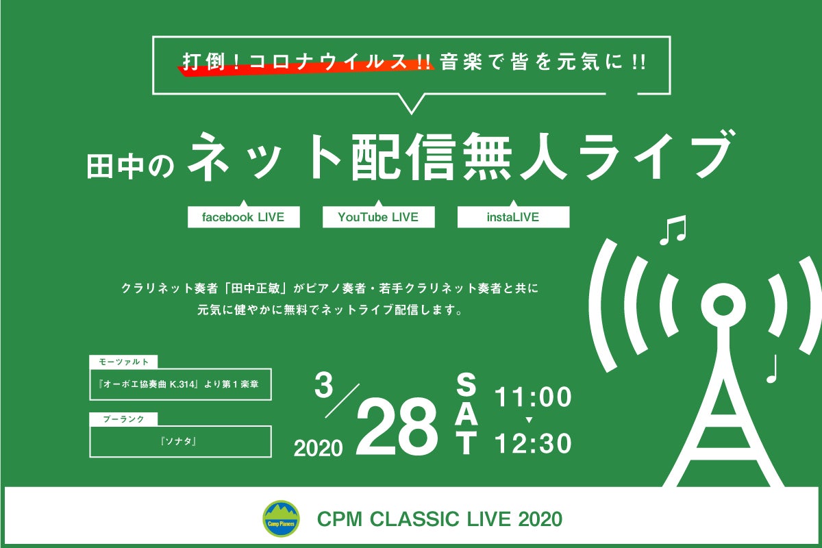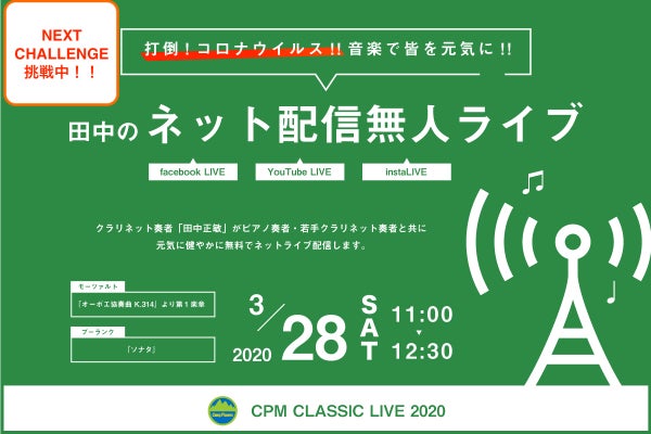 打倒!コロナウイルス!!音楽で皆を元気に!!をスローガンに、チーム田中全員のライブ演奏を全世界に配信し、たくさんの皆様の心やミッションを音楽(クラリネット)でサポートしたいのです。