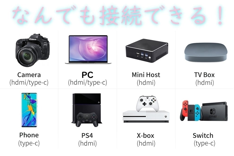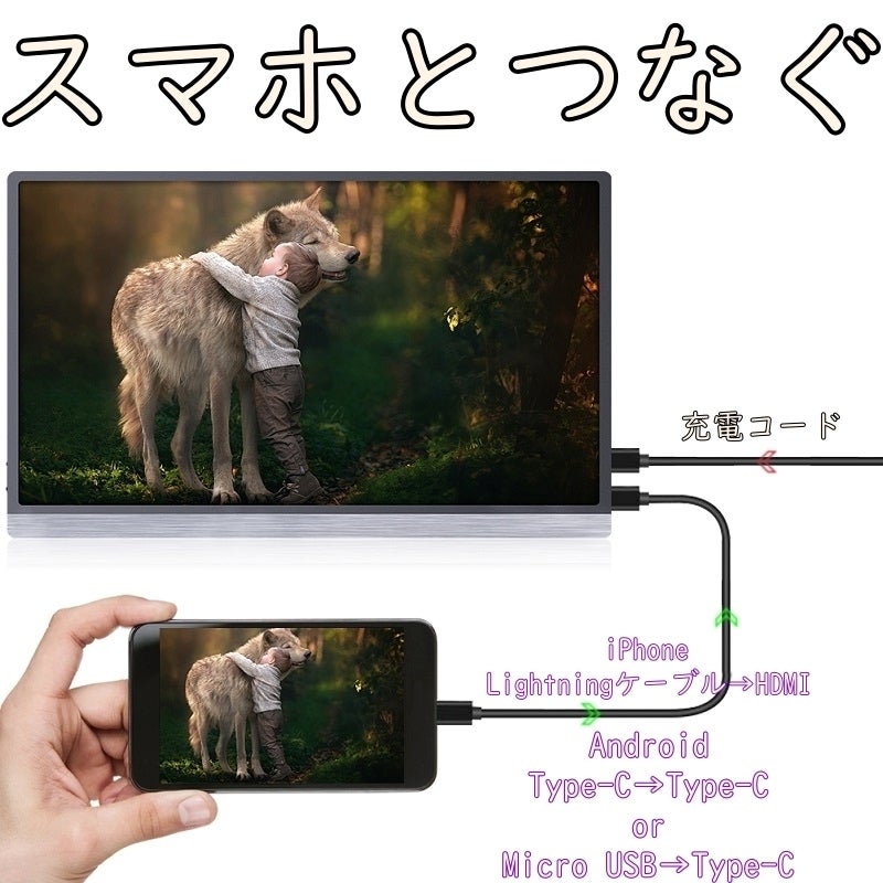 Android端末ならMicroUSBまたはUSB Type-CからHDMI入力端子またはType-C端子への接続が可能です。