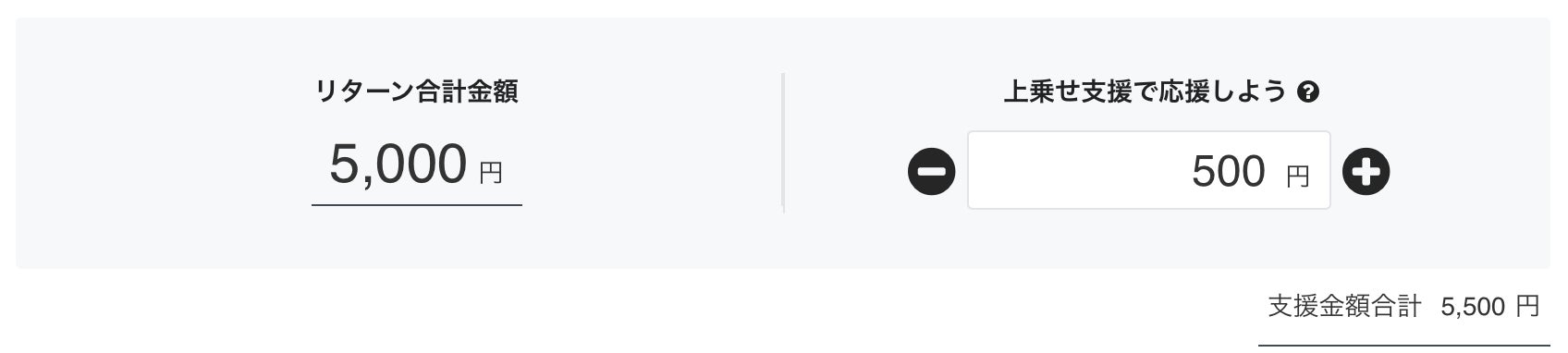 キャンプファイヤーの仕様として、支援金額を500円単位で上乗せいただくことも可能です!
