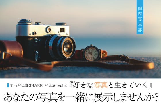 関西で活動する関西写真部SHAREが2回目の写真展を開催します。写真展テーマは「好きな写真と生きていく」。SHAREの"写真を通じて新しい出会いや繋がりを作る"...