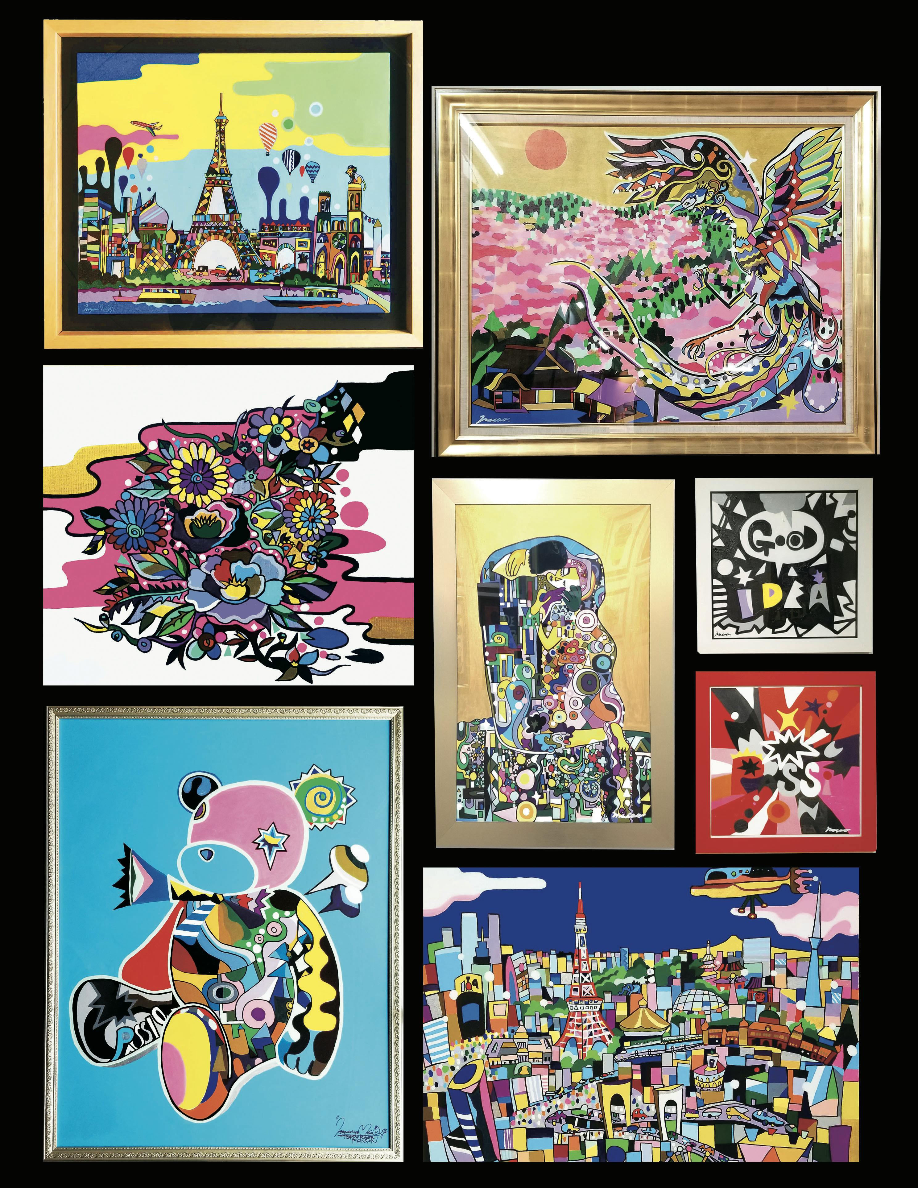 日本独自のポップアートを表現。感性のまま見たもの感じたものを多彩な色で彩りモチーフは様々で見た人が勇気や希望を感じる作品を数多く描いております。