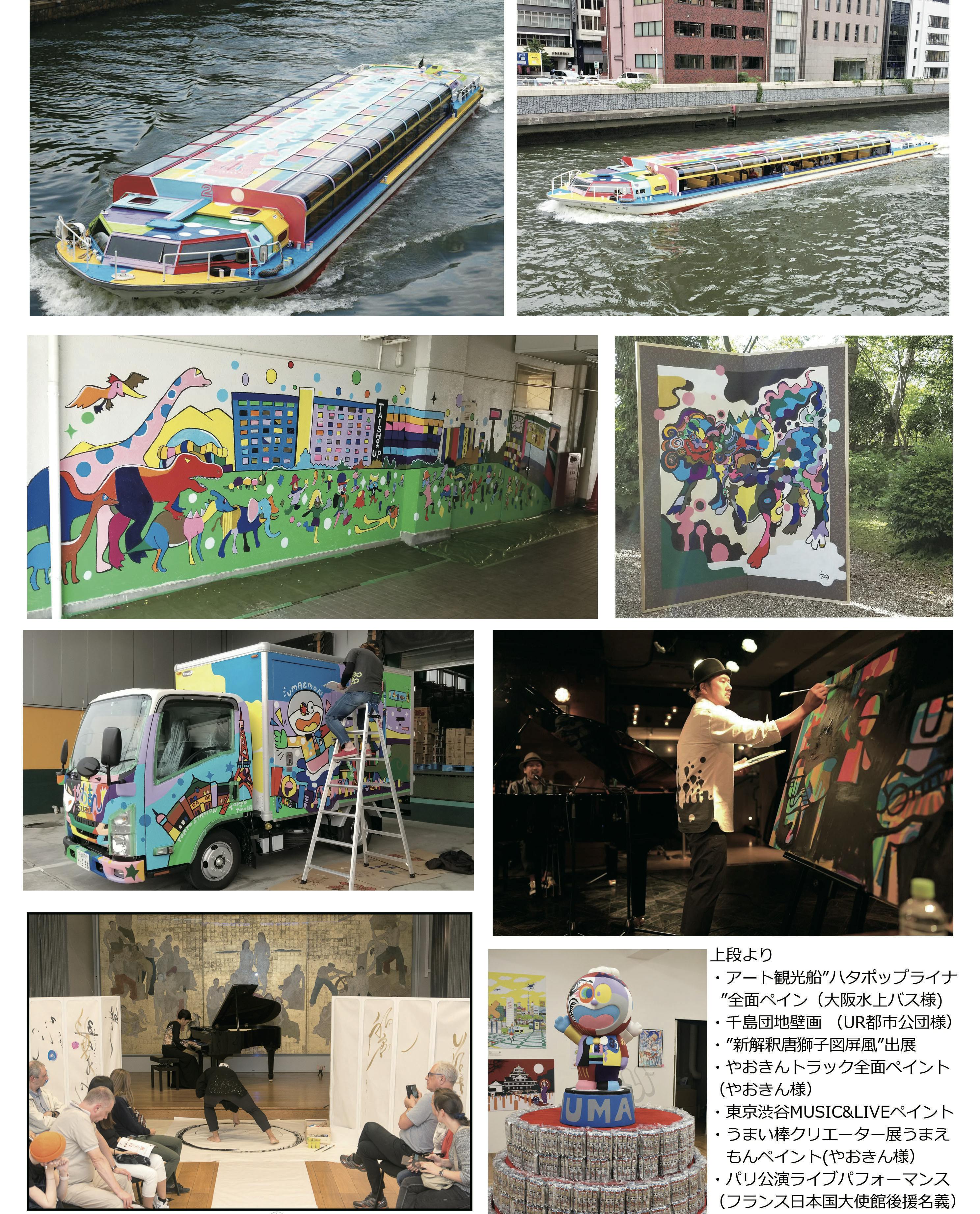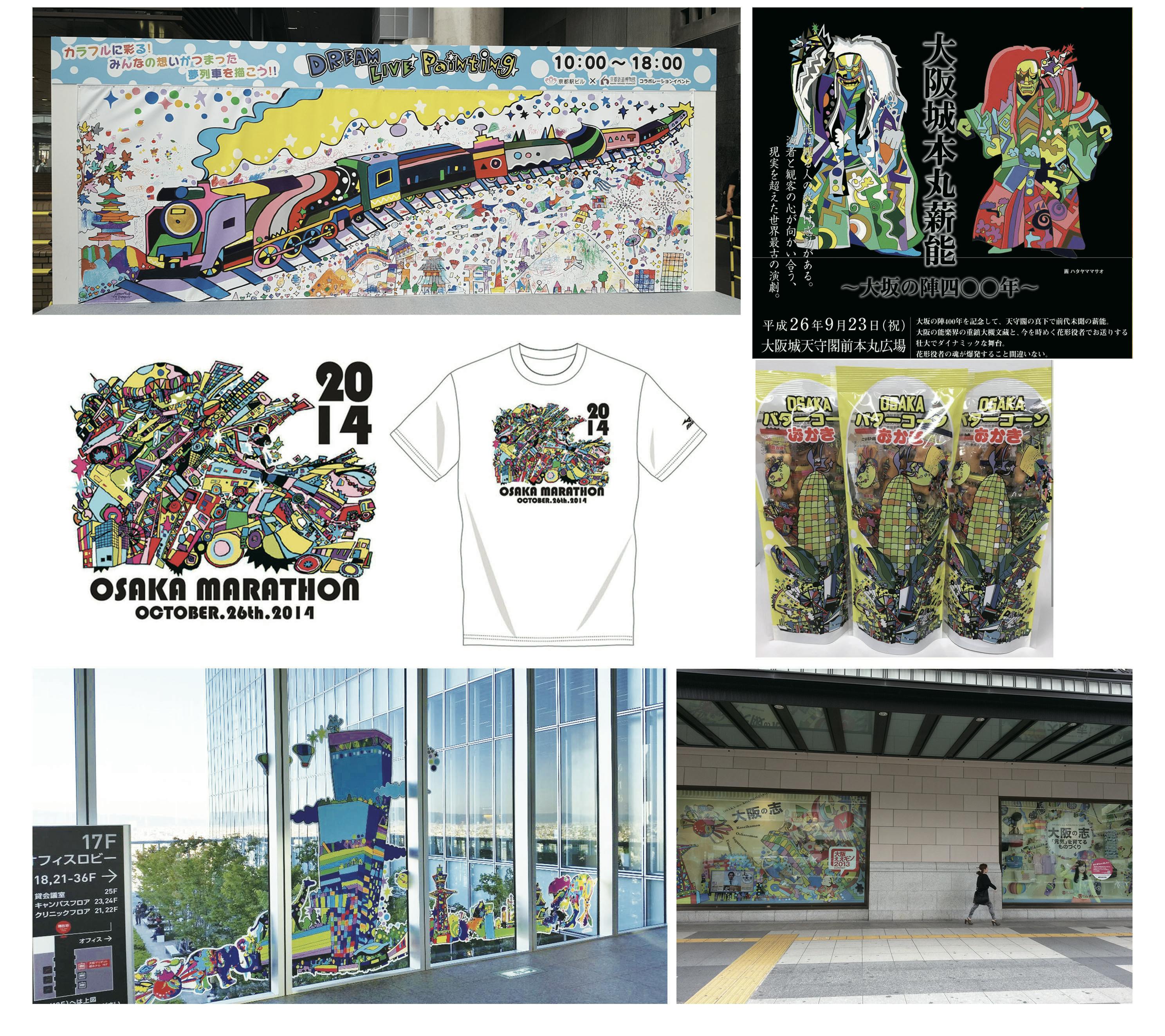 都市公団から依頼で壁画や大阪水上バスで日本初のアートな観光船「ハタポップライナー」の全面ペイント
