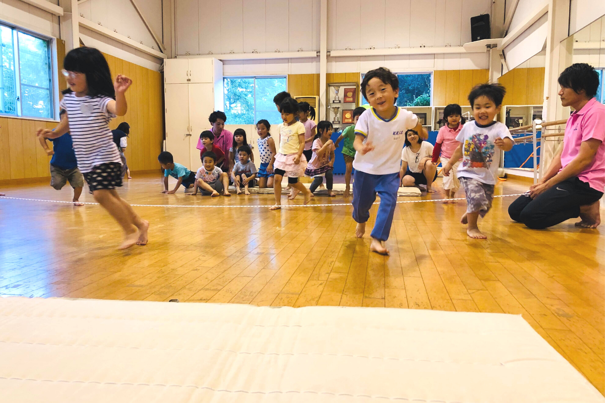 先生たちが子どもたちのガキ大将になりともに成長し、あそびの楽しさ=運動って楽しいを身につけてもらいます。