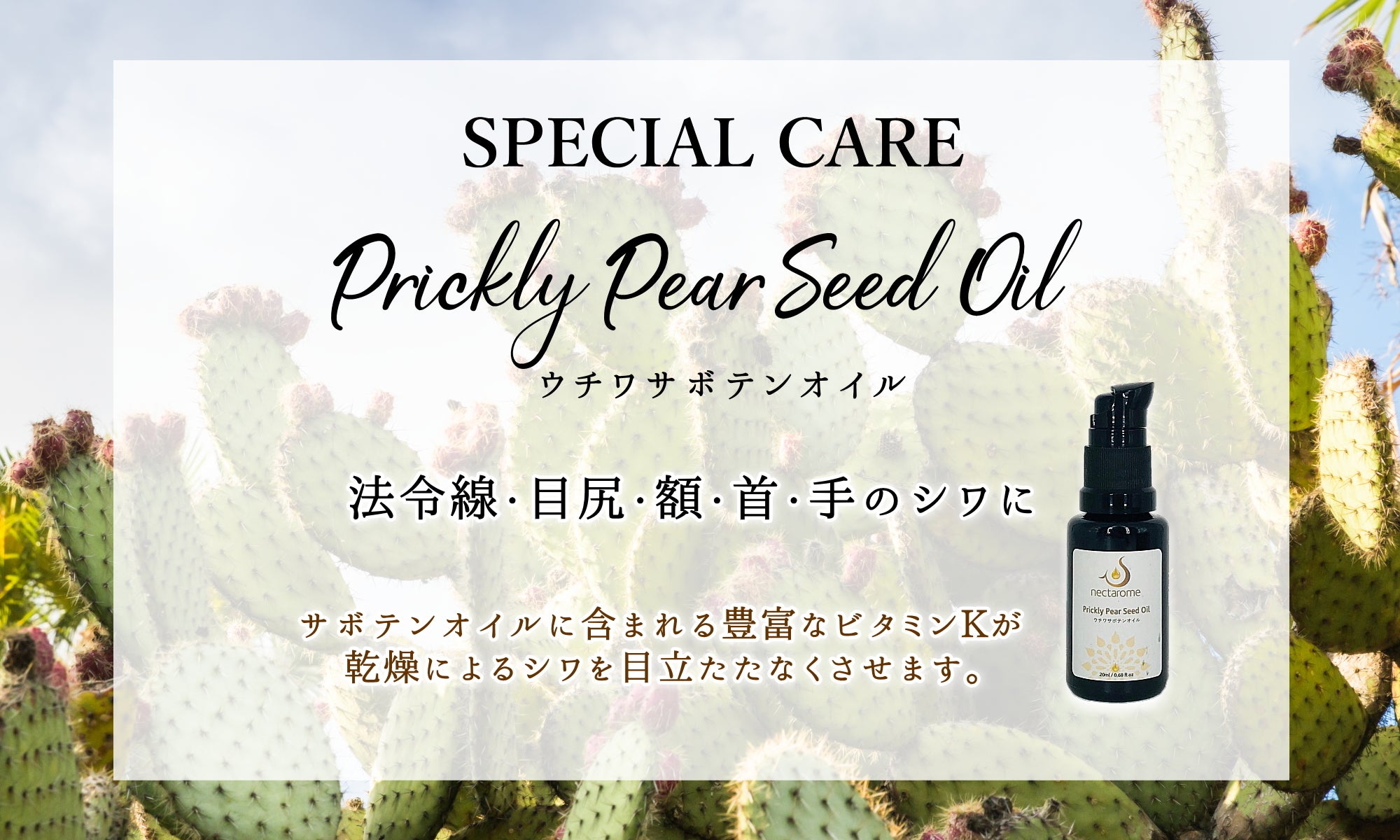 ※100%ナチュラルなサボテンオイルのため、サボテンオイル特有の匂いがあります。