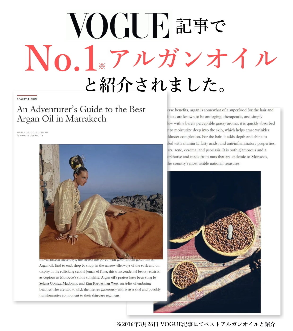 2020/05/13 08:00海外セレブリティの間でもアルガンオイルは「美の秘訣」として定着しています。彼らの肌が特に美しいのは、アルガンオイルを日々愛用しているからかもしれません。以下は、アルガンオイルを愛用していると公表している有名人の一部です。ハリウッドでは、レッドカーペットを歩く際の”秘密兵器”としてアルガンオイルを頭からつま先まで塗ることがトレンドです。特に、ハリウッド女優で歌手のエヴァ・メンデスは、イギリスのニュースメディア「Hello Magazine」で、”モロッコのアルガンオイルは、私の全身の秘密です。”と絶賛しています。日本人に比べて欧米や中東・北アフリカの女性達は、オイル美容が日常的に取り入れられているため、当たり前の美容法となっているのかもしれません。 もっと見る