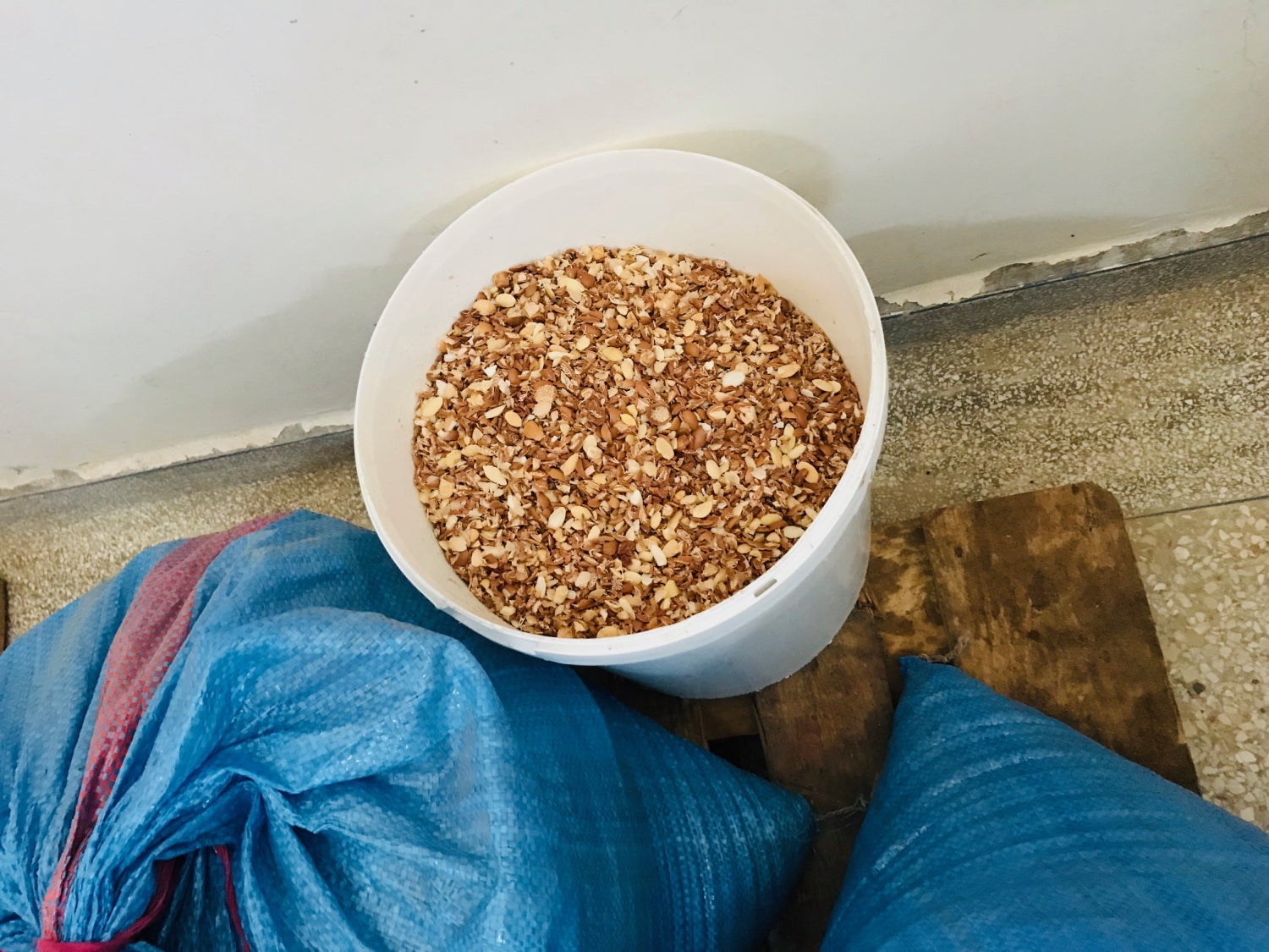 砕けてしまった種の殻は、更に非常に細かく砕かれ、「ゴマージュ(角質ケア)ミルク」に使われます。アルガンの殻を使った角質ケア用のスクラブは、ネクタローム社が開発し、現在もネクタロームでしか入手できません。とても有効な使い方です。