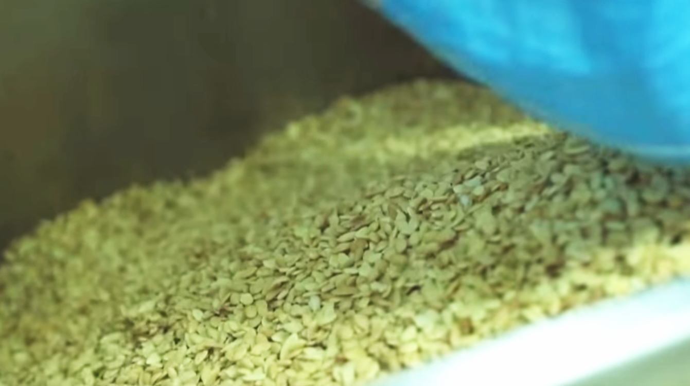 取り出された核(仁)は袋の中に詰められ、オイルを抽出する部屋へと運ばれます。