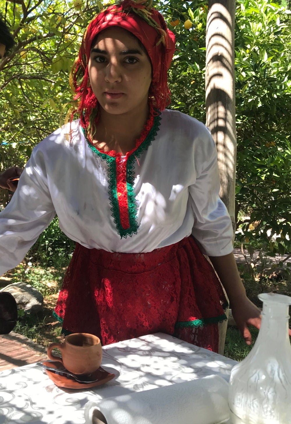 ネクタロームのオーガニックガーデンでは、地元の素材を使ったクスクス料理(モロッコの伝統料理)と庭園のハーブを使ったクッキーとハーブティーを提供しています。レストランのスタッフはベルベル族の民族衣装を着ています。