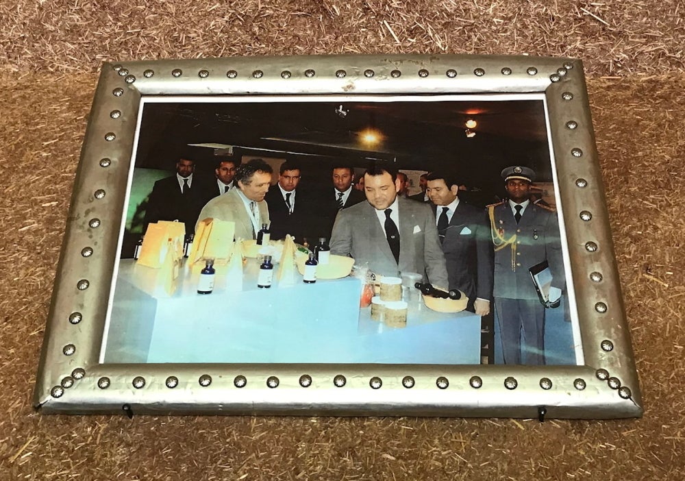 ネクタロームの製品を視察するモロッコの王様「ムハンマド6世」の写真が、オーガニック・ガーデンの中にある店舗に飾られています。