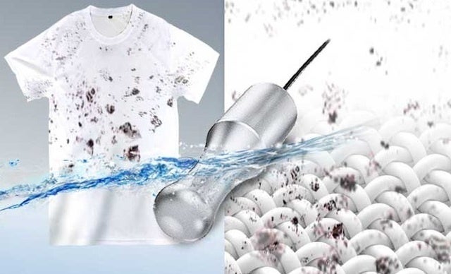 ハイパワーの1秒間に 36,000回 × 100W の超音波が水の中で作り出すナノレベルの微細な泡でこれまで従来の、水の勢いで洗う、擦る、圧力で汚れを落とす、とは全く別の洗浄方式を備えた「モバイル型 洗濯ツール」です。