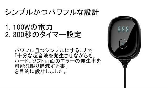 「水の勢い」、「物理的に擦る」、「圧力をかける」、ことでヨゴレを落とすのではなく、超音波の作り出す泡によりヨゴレの剥離させるので、対象の素材を傷めることなくキレイにすることを可能にしました。