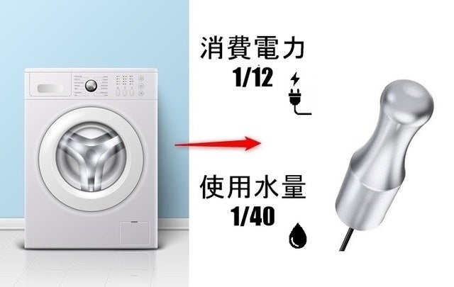 ※一般の家庭用洗濯機の10分の1の消費電力、2%以下の水量とは、一般的な市販の8㎏容量の