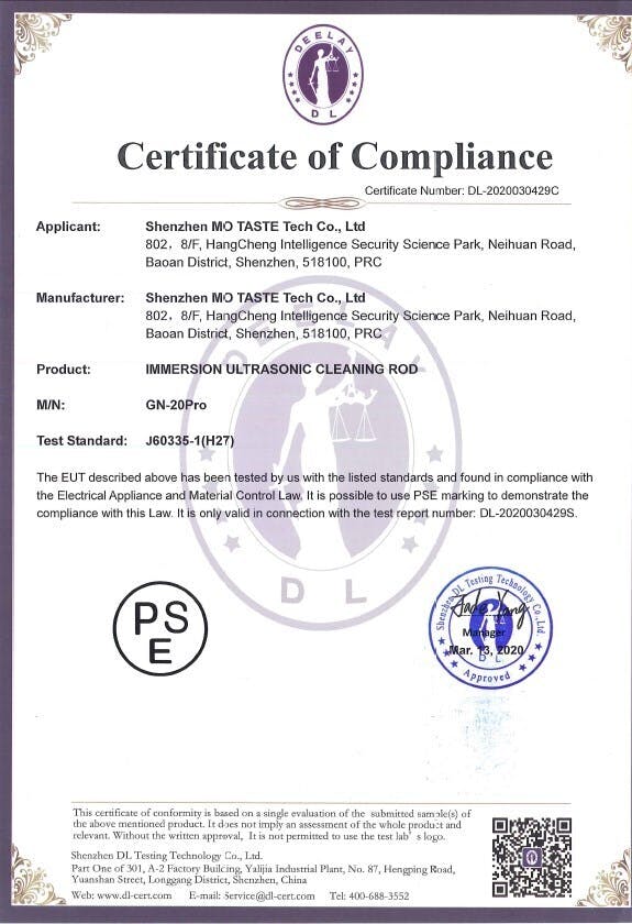 ※PSE認証の適合検査は実施済みです。(MegaSonicのメーカー型番は「GN-20Pro」です。)