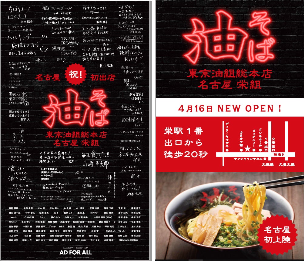 なんと、思い出の地『名古屋/錦』ど真ん中に、4月16日(予定)に「東京油組総本店」名古屋初出店となる店舗を開業させる事となりました!これは非常に嬉しく、めでたい事です。
